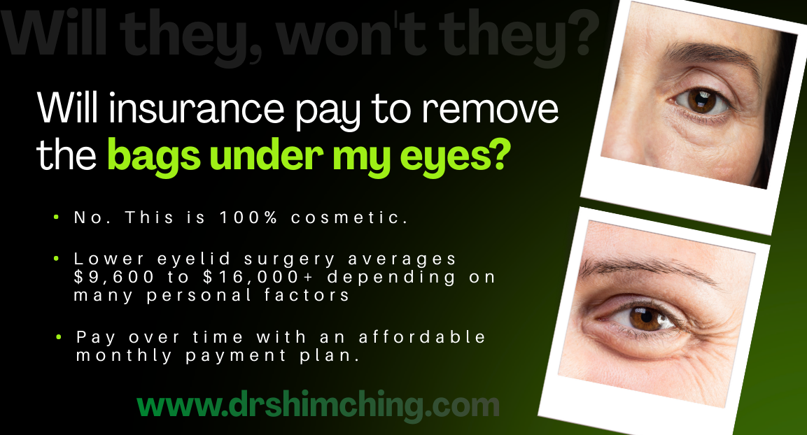 No. Lower eyelid surgery is considered cosmetic, even when under-eye bags are severe. Insurance companies don’t care if you like what you see in the mirror.