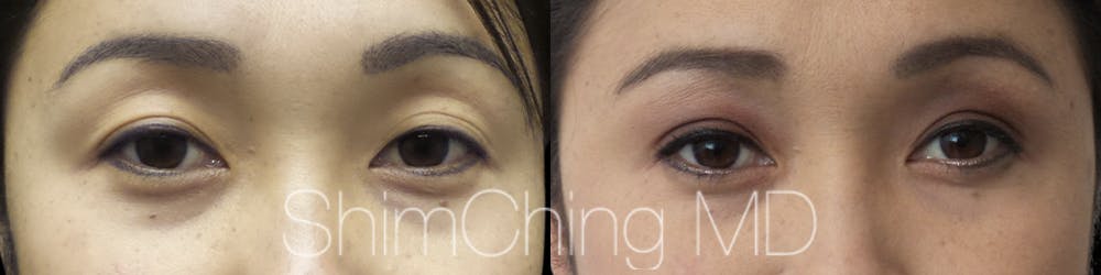This patient had double eyelid surgery, also called Asian eyelid surgery, performed in Honolulu, Hawaii, by Dr. Shim Ching. This procedure creates a defined upper eyelid fold to open the upper eye area.