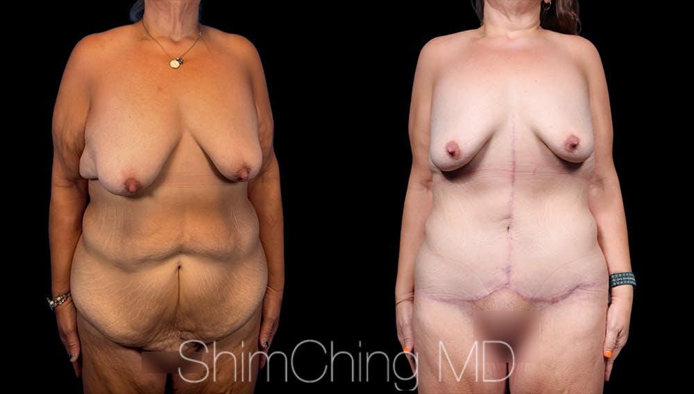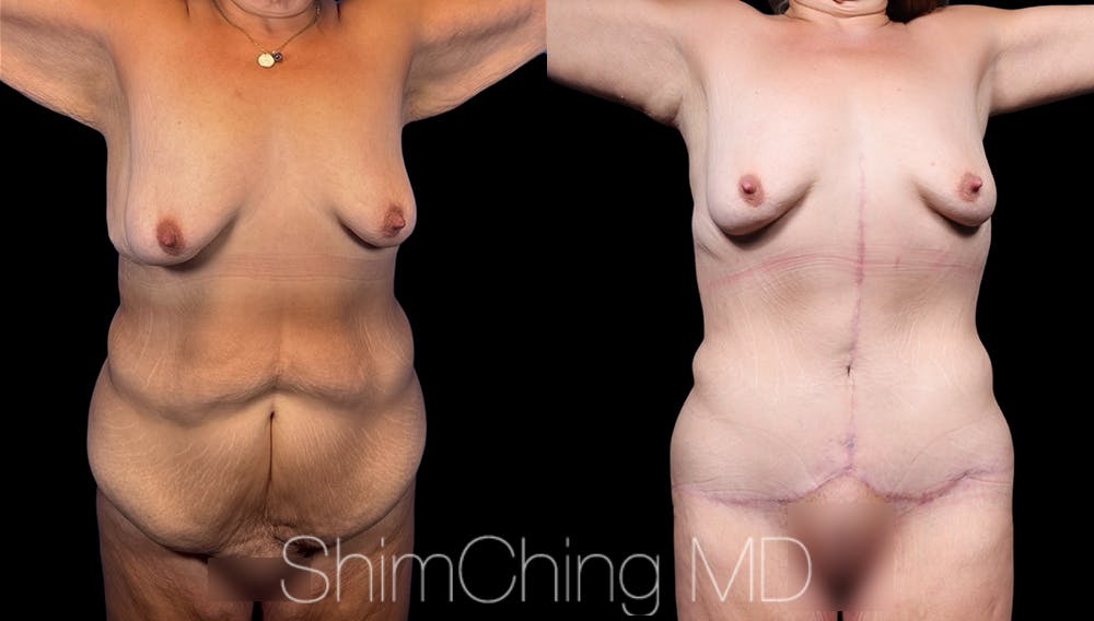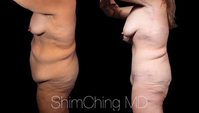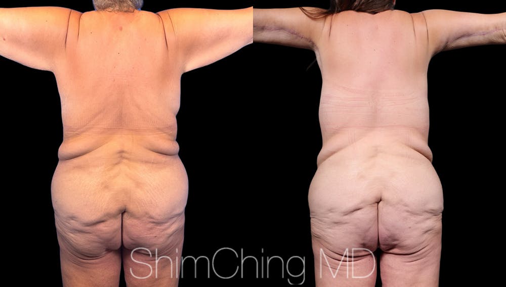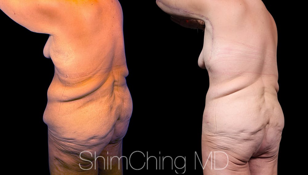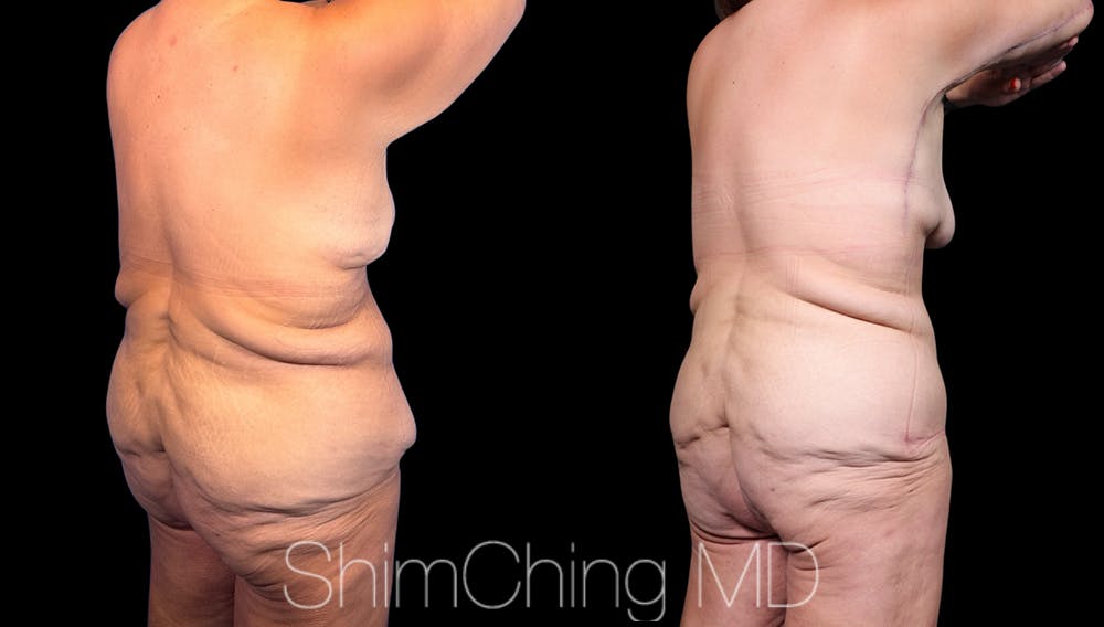 This woman came to see Dr. Shim Ching in Honolulu, Hawaii for a fleur de lis tummy tuck and arm lift after losing 100 pounds before surgery.