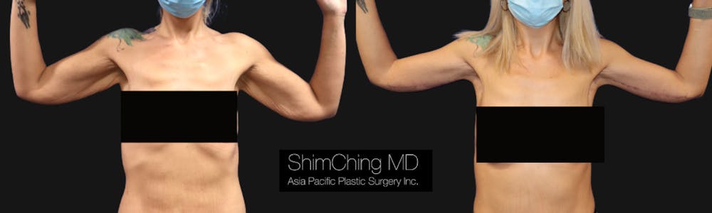 This woman underwent Arm lift procedure, or Brachioplasty, by Dr. Zachary Long. This surgery removes excess skin on the arms and side body. Results are shown after 3 months.