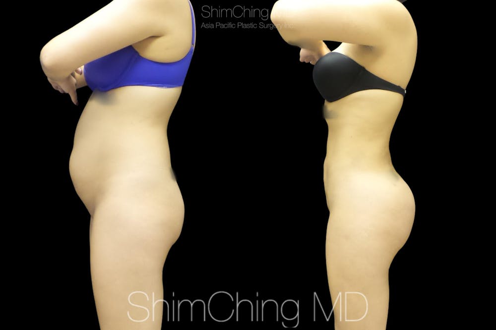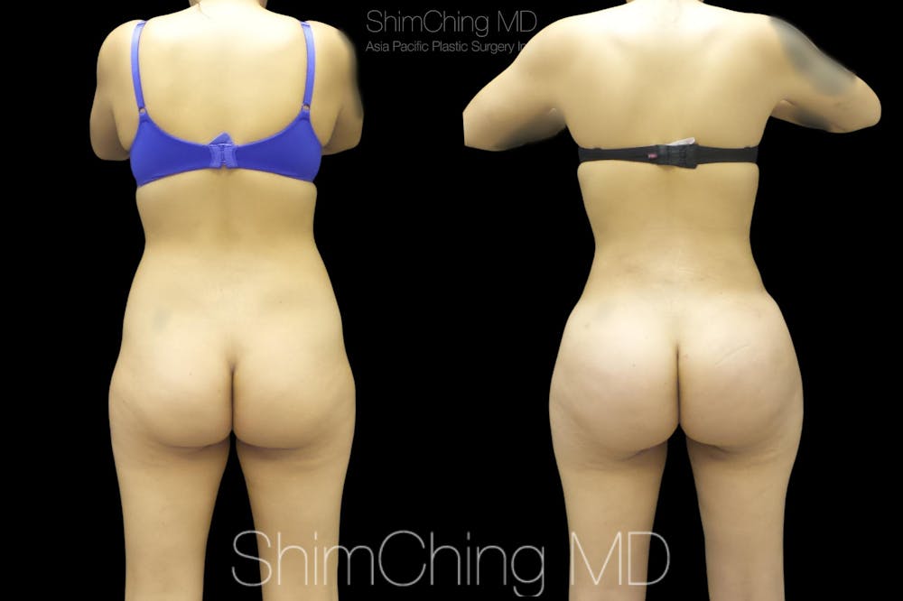 This woman came in for a Brazilian Butt Lift procedure done by Dr. Shim Ching in Honolulu, Hawaii. Dr. Ching was able to take fat from her abdomen, lower back, flanks, inner thighs, and outer thighs. Then transfers fat to the buttocks area.