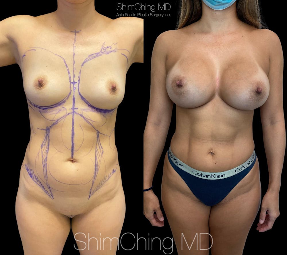 This woman came to see Dr. Shim Ching at his practice in Honolulu, Hawaii for a breast augmentation and hi-definition liposuction to the abdomen.