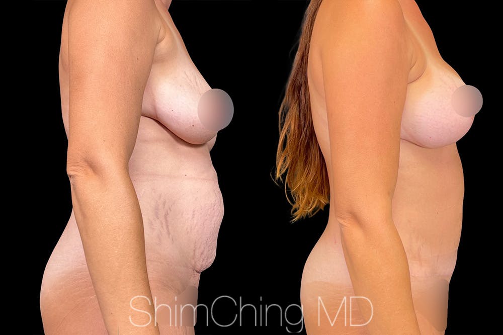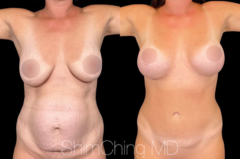 This woman came to see Dr. Shim Ching at his office in Honolulu, Hawaii for a mommy makeover. This was a combination procedure including a full tummy tuck for her abdomen and a breast lift with implants.