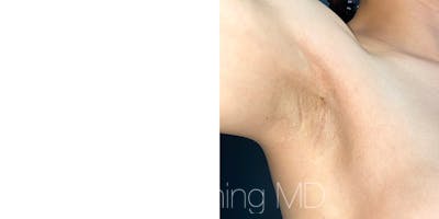 This patient came to see Dr. Shim Ching in Honolulu, Hawaii for a breast augmentation revision. He replaced her implants that were 270 cc and 275 cc for slightly larger implants by using his no scar breast augmentation technique making the incision in the armpit (see the additional armpit view). He also did fat transfer to the cleavage to prevent rippling.