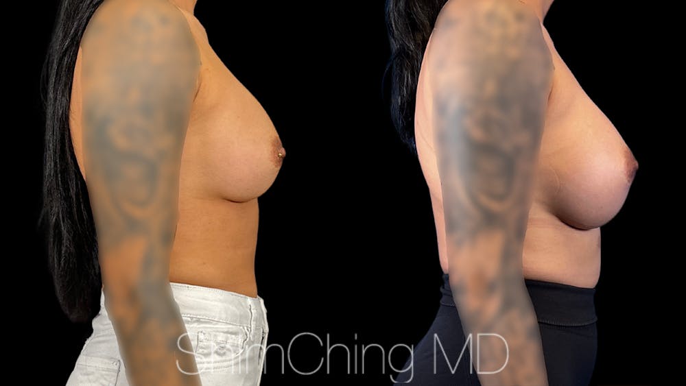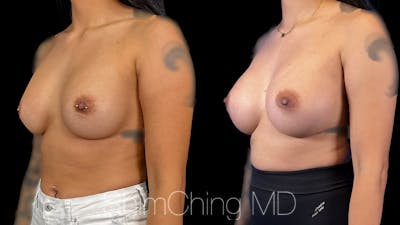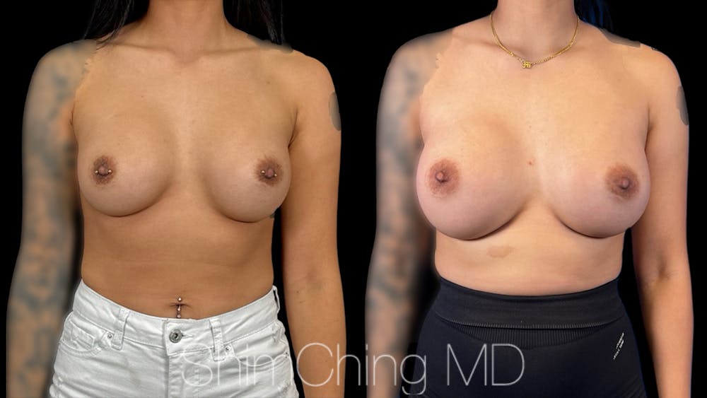 This woman came to see Dr. Shim Ching at his office in Honolulu, Hawaii for a breast augmentation revision to remove and replace breast implants 300 cc each side. The results are shown 6 months post-op.