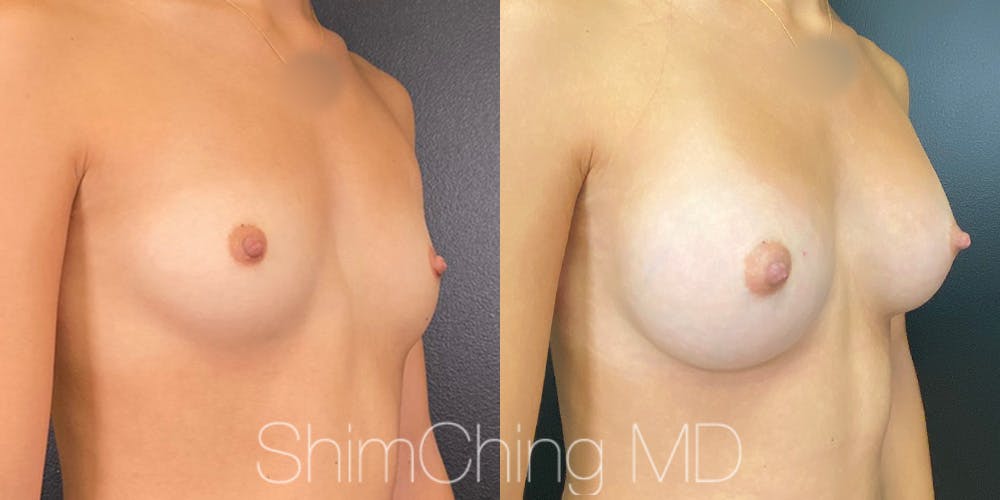 Dr. Shim Ching performed a no scar breast augmentation using a transaxillary incision and silicone soft touch implants placed in the submuscular position. During the surgery, he placed incisions in the crease of each armpit, called the transaxillary technique, to avoid any scars on the breasts.