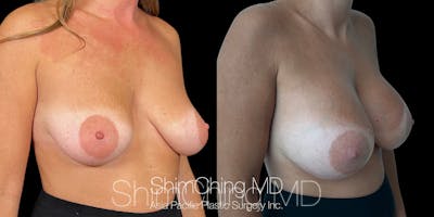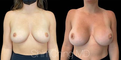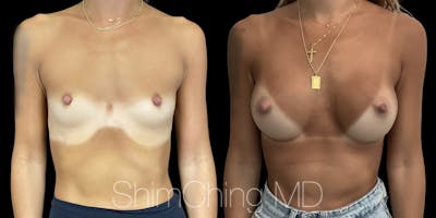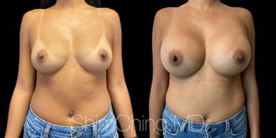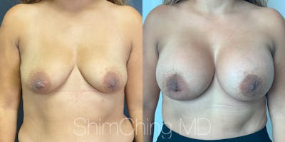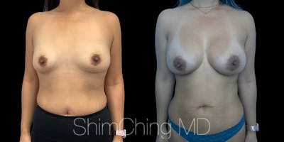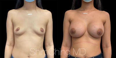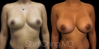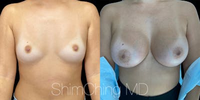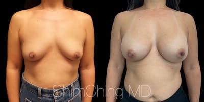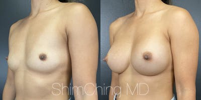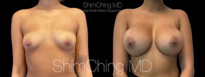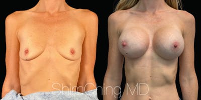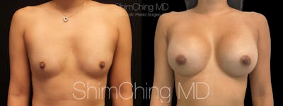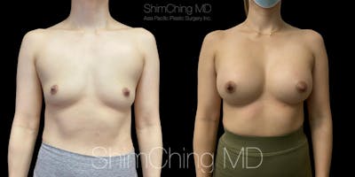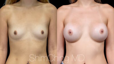 Dr. Shim Ching performed a no scar breast augmentation using a transaxillary incision and silicone soft touch implants placed submuscular. During the breast surgery, he placed incisions in the crease of each armpit, called the transaxillary technique, to avoid any scars on the breasts.