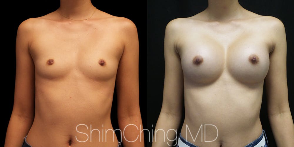 Dr. Shim Ching performed breast augmentation for this patient at his practice in Honolulu, Hawaii. During the surgery, he placed incisions in the crease of each armpit, called the transaxillary technique, to avoid any scars on the breasts.