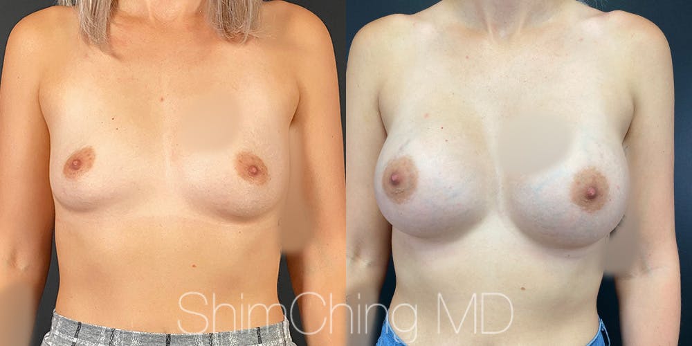 Dr. Shim Ching performed breast augmentation for this patient at his practice in Honolulu, Hawaii. During the surgery, he placed incisions in the crease of each armpit, called the transaxillary technique, to avoid any scars on the breasts.
