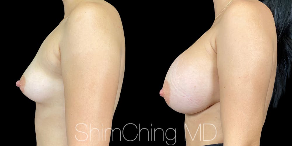 Dr. Shim Ching performed a no scar breast augmentation using a transaxillary incision and silicone soft touch implants placed submuscular. During the surgery, he placed incisions in the crease of each armpit, called the transaxillary technique, to avoid any scars on the breasts.