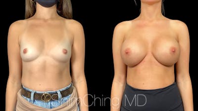 This 36 year old patient before and after breast aug with circumareolar lift.