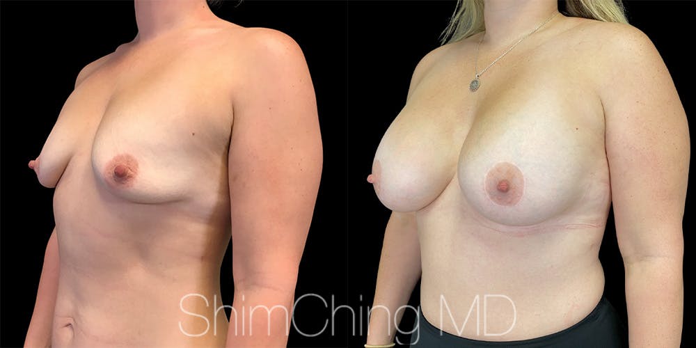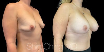 This woman came to Dr. Shim Ching's practice for a Circumareolar Breast Lift procedure with implants in Honolulu, Hawaii. This lift reduced the size of the areola and improves the shape of the breast with minimal scarring.