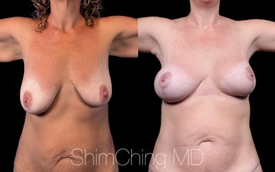 This woman came to Dr. Shim Ching's practice for a Breast Lift procedure with high profile implants in Honolulu, Hawaii.