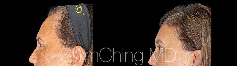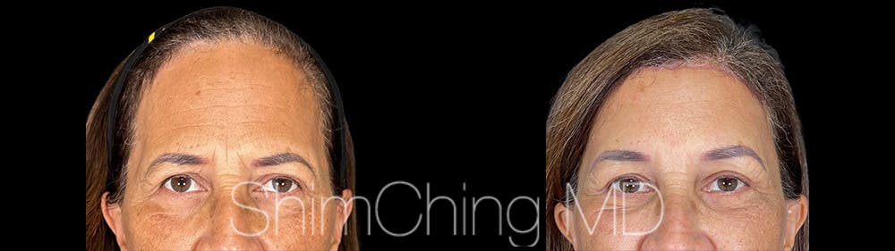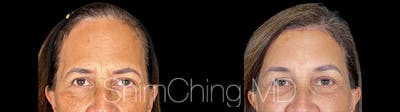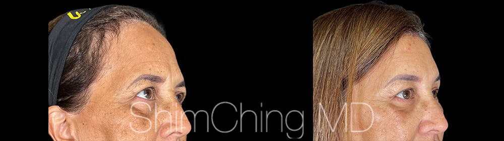 This 60 year old patient came to see Dr. Shim Ching for an anterior brow lift and an upper and lower blepharoplasty. The results are shown 3 months after.