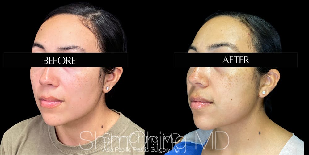 This patient came to see Dr. Shim Ching at his practice in Honolulu, Hawaii for buccal fat pad removal. This procedure removes the fat pad in the cheek for a more sculpted look and slimmer face. It is done under local anesthetic.