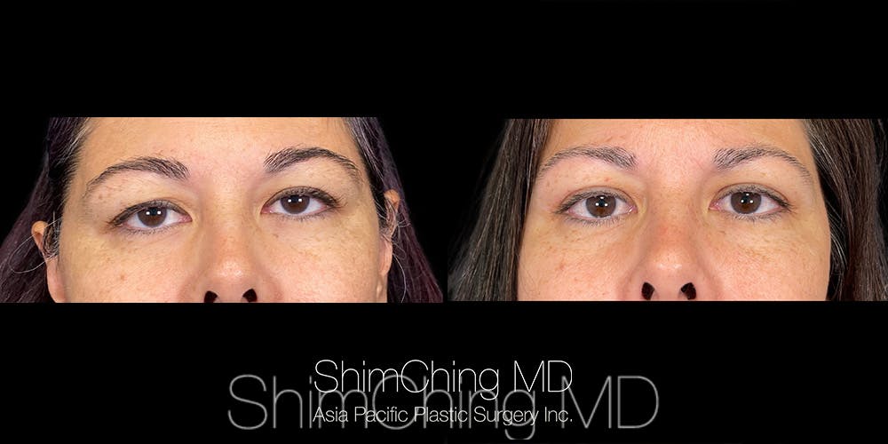 This woman came to Dr. Shim Ching’s practice in Honolulu, Hawaii, for upper eyelid surgery and eyelid tightening.