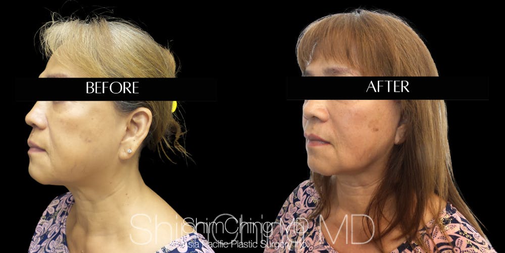 Dr. Shim Ching performed a personalized combination of facial rejuvenation procedures for this patient to address the beginning signs of aging. He performed a mini facelift at his Honolulu facility.