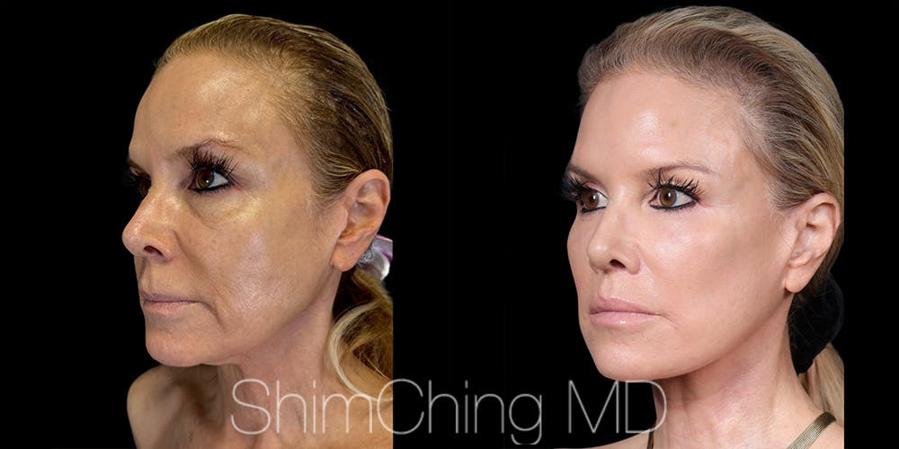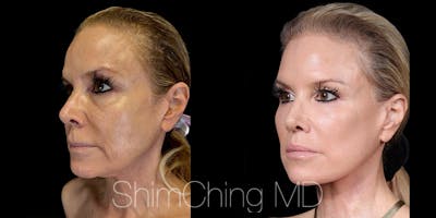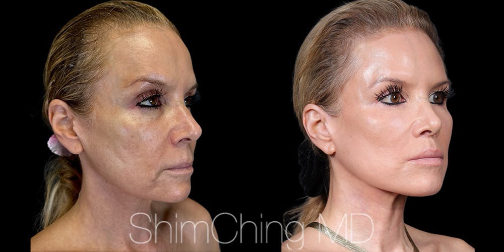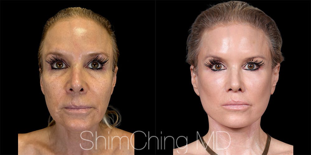 This is a 58 year old female patient received a face lift, neck lift, bilateral lower blepharoplasty, lip lift, fat grafting to lips