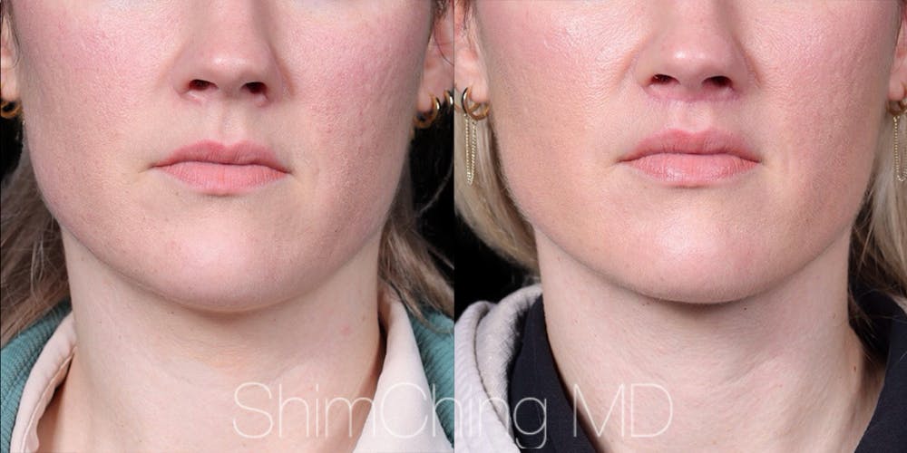 This is a 32 year old female patient before and 6 months post op lip shortening/lip lift procedure