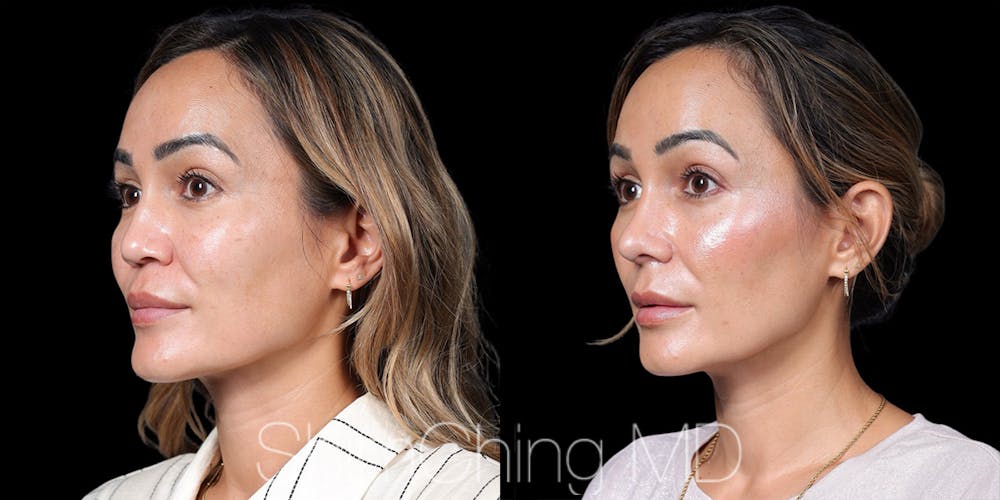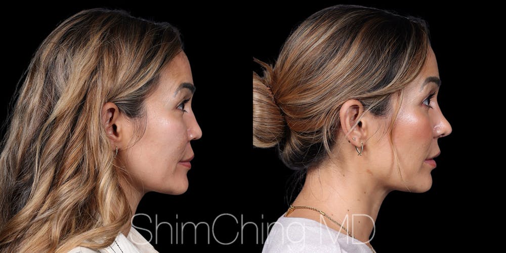 This 42 year old patient had an Asian rhinoplasty by Dr. Ching in Honolulu, Hawaii. During this procedure there was a dorsal hump reduction, infrastructure to a narrow bridge, donor cartilage to nasal tip, and an alar flare/base reduction. The results are shown 1 month after.