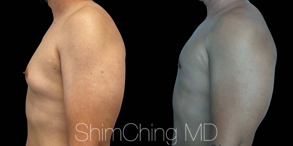 This patient came to Dr. Shim Ching's practice in Honolulu, Hawaii for a Gynecomastia procedure. Dr. Ching performed Liposuction to the chest with glandular excision and nipple reduction with no scars.