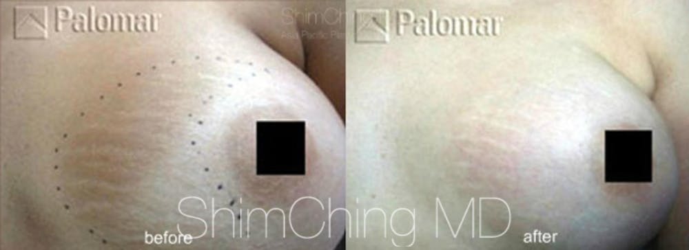 The machine that was used is called a Fractional Non-Ablative Resurfacing Laser to help treat stretch marks. It also helps with acne scars, post-trauma scars/ surgical scars, large pores, fine lines, and wrinkles.
